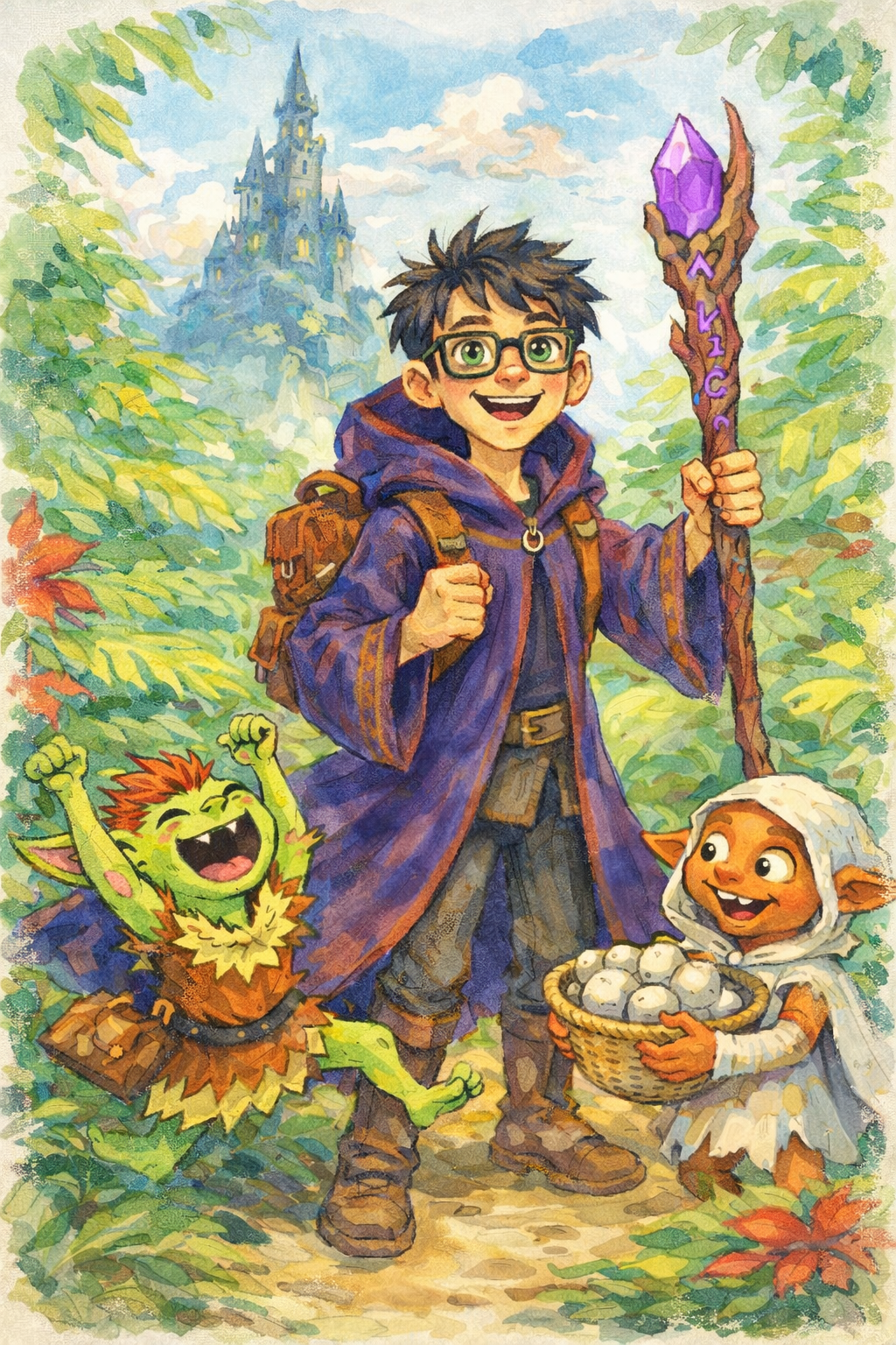 This is a cozy and lighthearted episodic isekai progression fantasy with a hard magic system and adorable goblins, in a colorful fantasy world where the "bad guys" need a hero. Think "Gravity Falls" meets "Firefly" meets "Hotel Transylvania" meets "Despicable Me".
